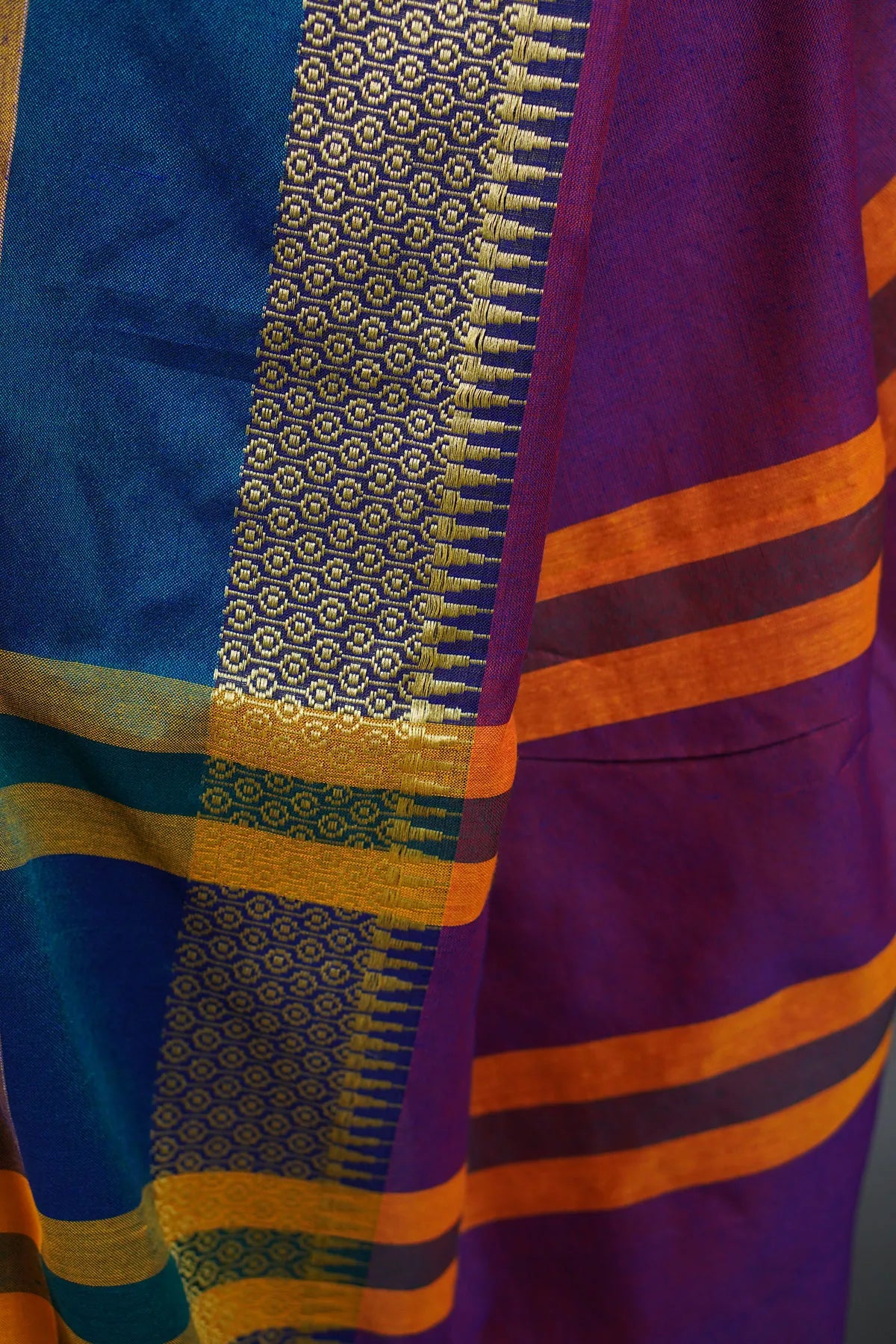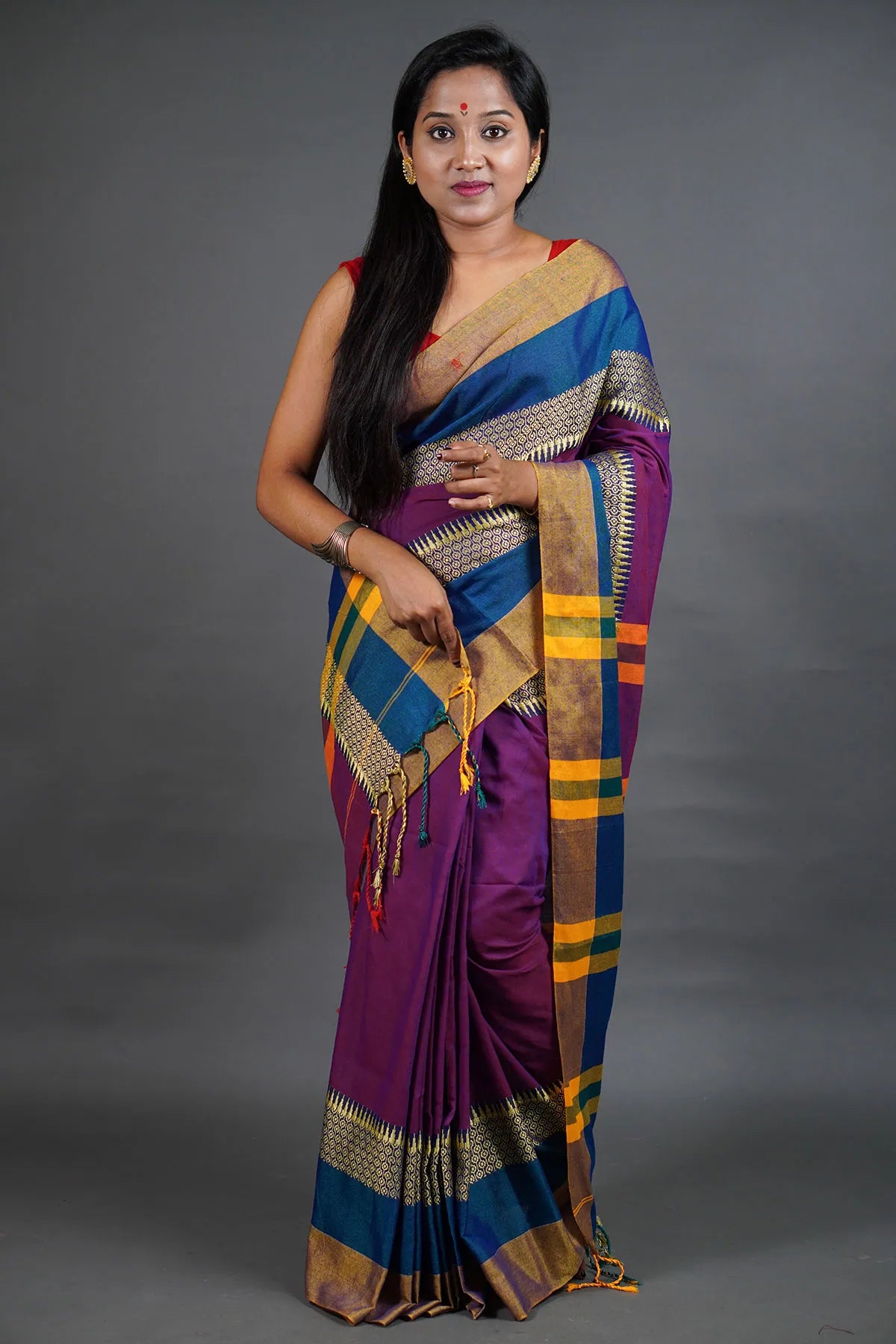 Multicolor Handloom Cotton Saree with Geometric Patterns and Thread Works